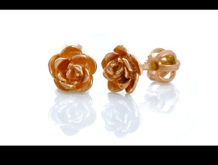 Naušnice růžičky z růžového zlata. Uzávěr na šroubek je velmi praktický a pohodlný. Nemusíte naušnice sundavat na sport ani na spaní a můžete je tak nosit neustále.
