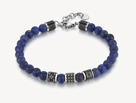 Pánský náramek z nerezové oceli 316L a černým smaltem. Kuličky jsou z přírodních kamenů lapis lazuli. Tento náramek oživí outfit muže každého věku.