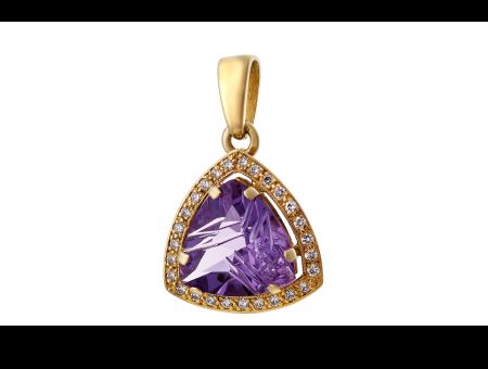 Přívěšek s přírodním ametystem se zajímavým brusem ve tvaru trianglu. Kolem ametystu jsou osázeny drobné brilianty, které rozjasní celý šperk a dodají mu exkluzivní vzhled.