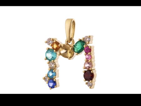 Přívěšek písmeno M pro maminku, miláčka nebo třeba Marušku. Přívěšek je osazen přírodními kameny safíry, topazy, granátem, citrínem, brilianty, smaragdem a rubínem.