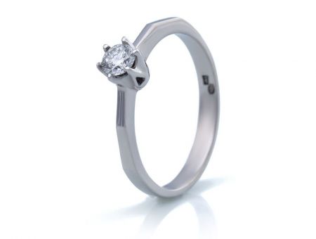 Prsten šaton s rovně spilovanou šínou, která je zajímavým a neobvyklým detailem tohoto prstenu. V prstenu je zasazen briliant o váze 0,22ct kvalitě Si a barvě H. Tento prsten je svým neobvyklým zpracováním velmi originální.