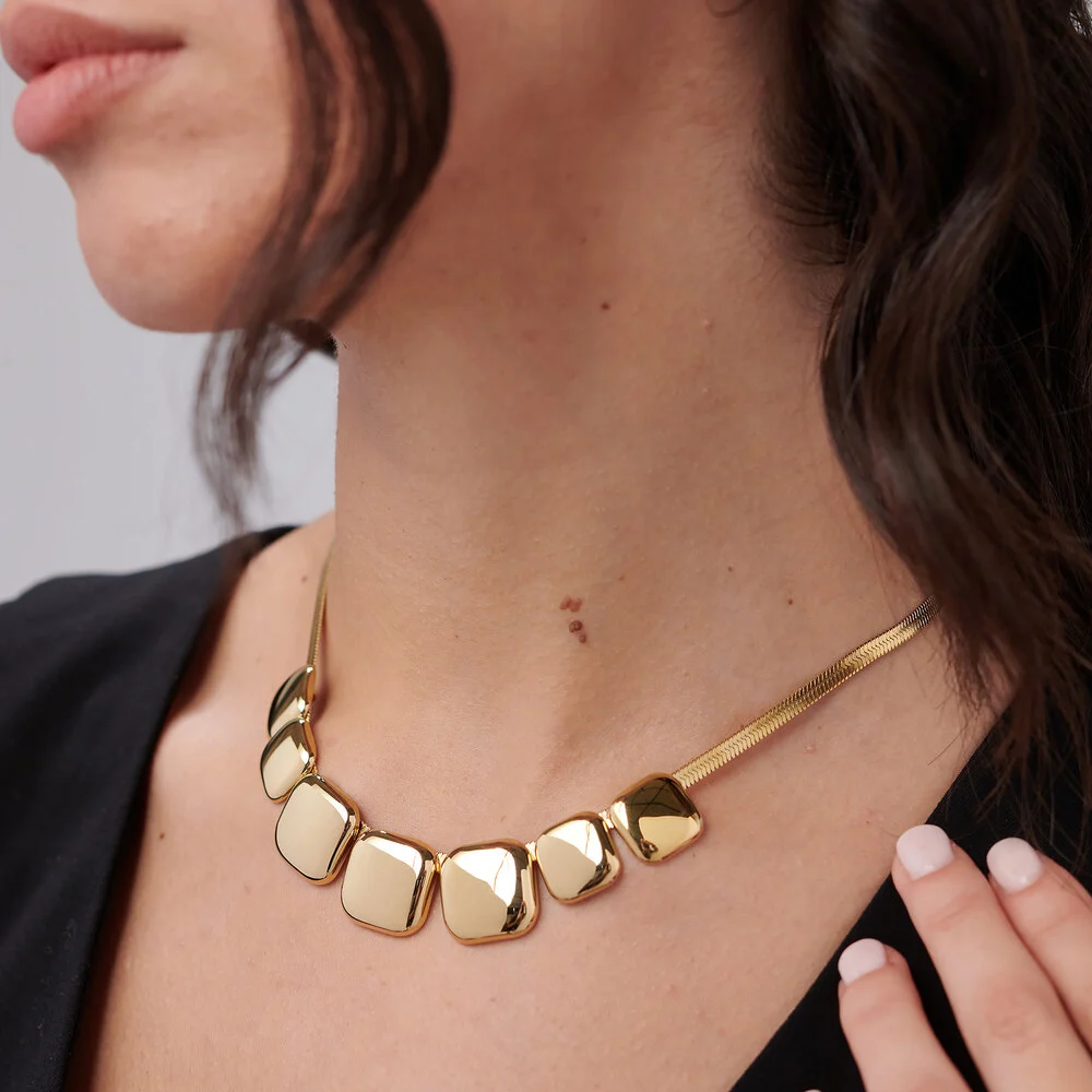 Masivní náhrdelník značky Brosway je elegantní šperk, který dokonale podtrhne ženskou krásu. Je vyroben z kvalitní chirurgické oceli 316L, která je velmi odolná a antialergická. Náhrdelník je potažen zlatým PVD povlakem. Je ozdoben přívěsky ve hladkém čtvercovém tvaru, nabízí moderní design. Šperk je vhodný pro každodenní nošení, ale zároveň bude i krásnou ozdobou společenských šatů. Náhrdelník má zapínání na praktickou karabinu, která je bezpečná. Tento náhrdelník se hodí ke každému i ležernímu outfitu.