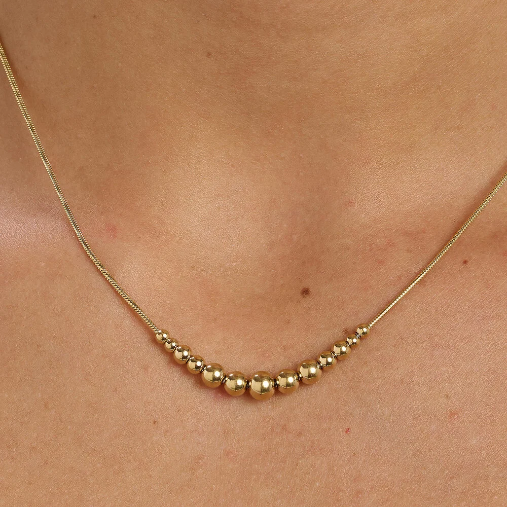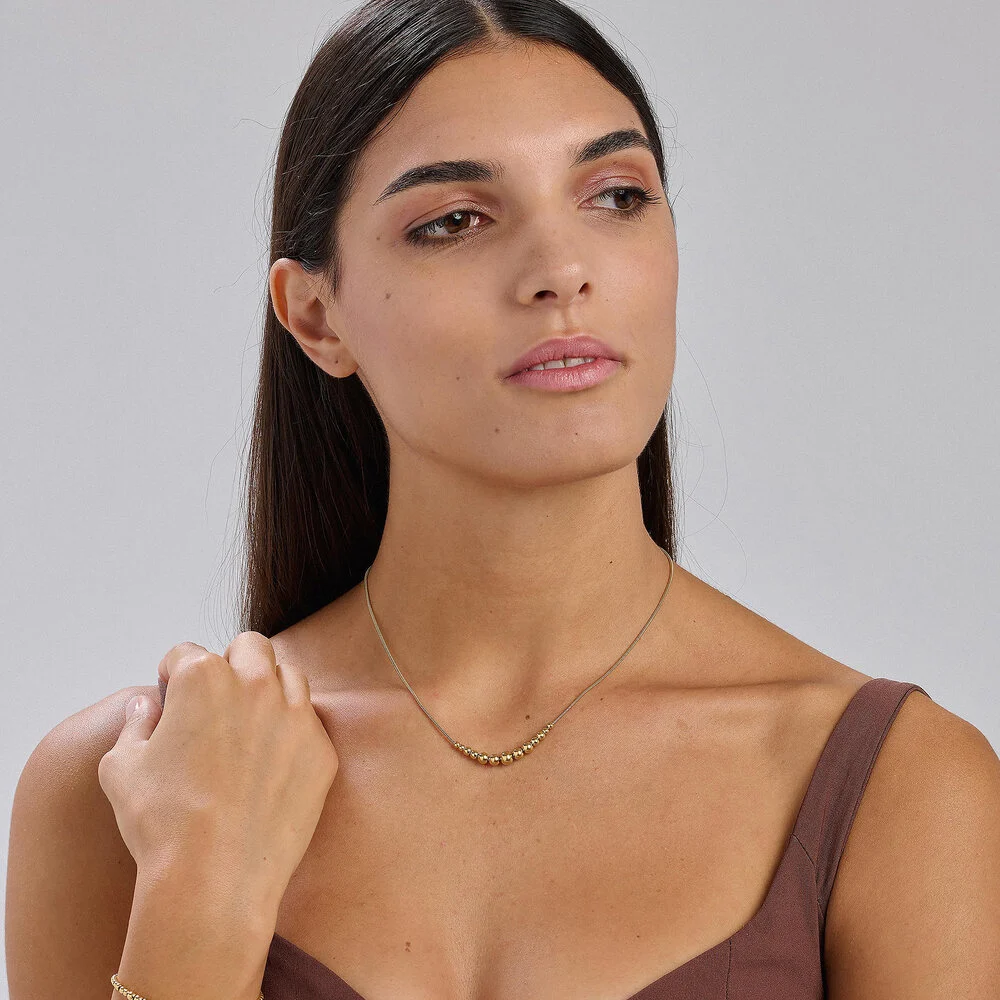 Půvabný náhrdelník značky Brosway je elegantní doplněk, který osloví každou ženu. Je vyroben z kvalitní chirurgické oceli, která nabízí dlouhou životnost a odolnost proti poškrábání. Náhrdelník je potažen zlatým PVD povlakem. Na řetízku typu hádek jsou navlečené středové ocelové korálky. Je ideální volbou pro každodenní nošení, dodává šarm a jemnost každému outfitu. Skvělý výběr pro ty, kteří hledají stylový a trvanlivý šperk.