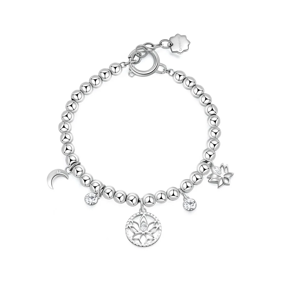 Korálkový náramek Chakra značky Brosway je elegantní a stylový doplněk pro ženy, který spojuje krásu a sílu chirurgické oceli 316L. design s bílými kameny přináší jemnost a sofistikovanost. zdobený třpytivými krystaly, zdobený přívěsky s motivem lotosového květu. zapínání na ocelovou karabinu zajišťuje bezpečné nošení, což dělá tento náramek skvělou volbou pro každodenní nošení nebo speciální příležitosti.