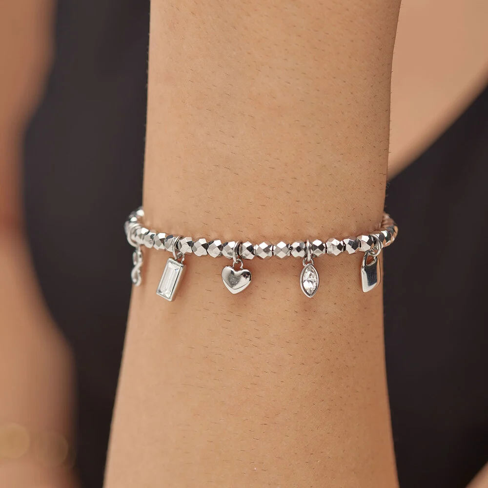 Půvabný korálkový náramek značky Brosway je elegantní doplněk, který spojuje krásu a harmonii. Je vyroben z kvalitní chirurgické oceli, která zaručuje dlouhou životnost a odolnost. Na náramku jsou zavěšeny přívěsky s motivem srdíčka, symbolu nekonečna a zámkem, doplněný o dva přívěsky s vybroušeným čirým krystalem. Je ideální volbou pro každou ženu, která touží po spojení s energií a rovnováhou.