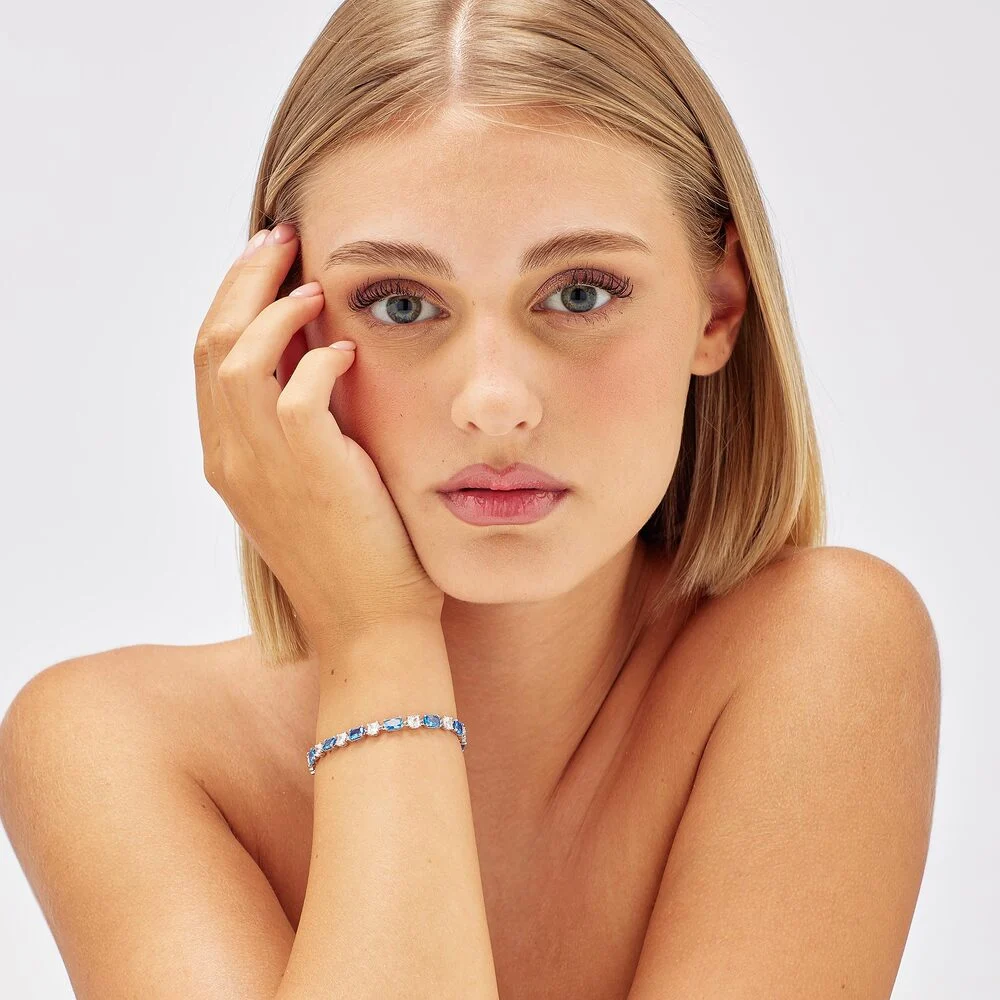 Stylový dámský náramek značky Brosway je elegantní kousek, který osloví každou ženu, jež hledá jemnost a šarm. vyrobený z kvalitního stříbra 925/000 s rhodiovanou povrchovou úpravou. osazený čirými a modrými kubickými zirkony, které mu dodávají oslnivý vzhled. tento náramek je nejen krásný, ale i odolný proti opotřebení. ideální doplněk pro každodenní nošení i speciální příležitosti.