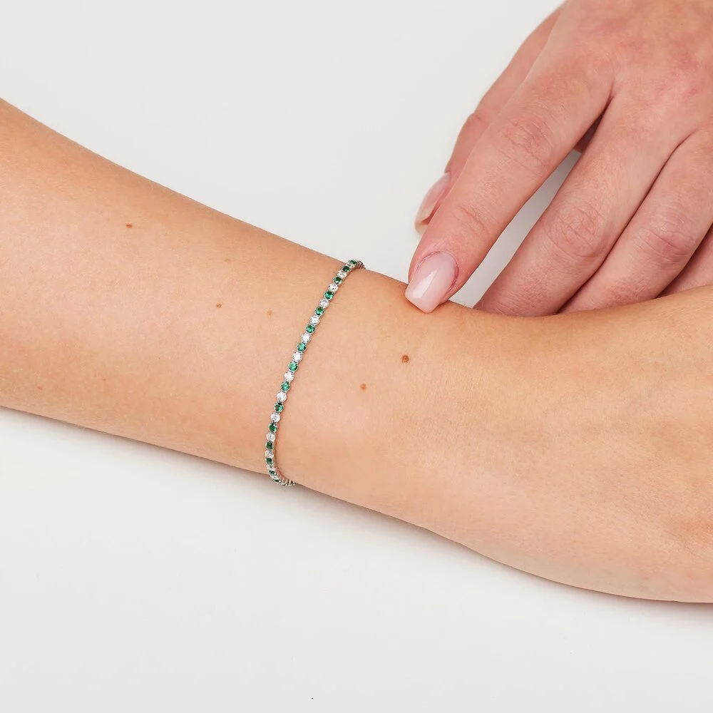 Tenisový dámský náramek značky Brosway je elegantní kousek, který osloví každou ženu, jež hledá jemnost a šarm. Je vyroben z kvalitního stříbra 925/1000 s rhodiovanou povrchovou úpravou. osazený čirými a zelenými kubickými zirkony, které mu dodávají oslnivý vzhled. Tento náramek je nejen krásný, ale i odolný proti opotřebení. Je ideálním doplňkem pro každodenní nošení i speciální příležitosti.