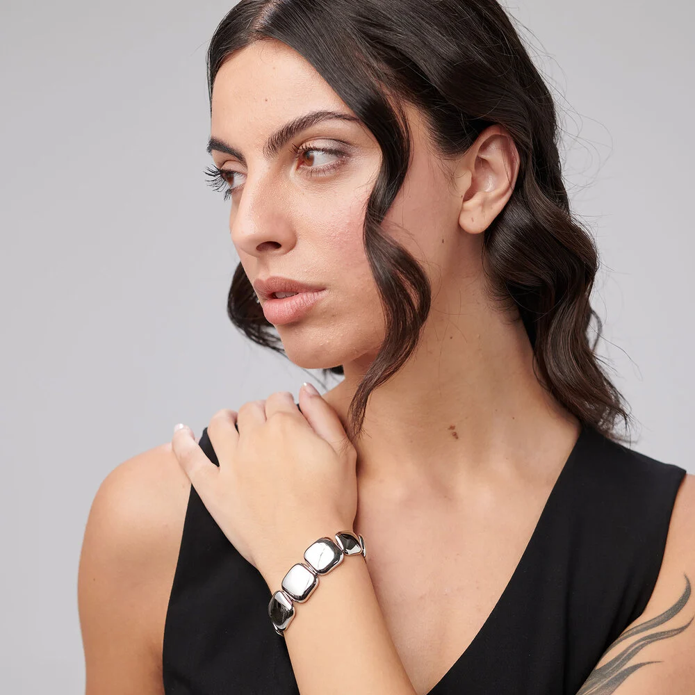 Masivní náramek značky Brosway je elegantní šperk, který dokonale podtrhne ženskou krásu a eleganci. Je vyroben z kvalitní chirurgické oceli 316L. Náramek je tvořen přívěsky v hladkém čtvercovém tvaru, čímž působí velmi jednoduše a moderně. Náramek je vhodný pro každodenní nošení díky zapínání ve formě praktické karabiny. Tento náhrdelník se hodí ke každému i ležernímu outfitu.