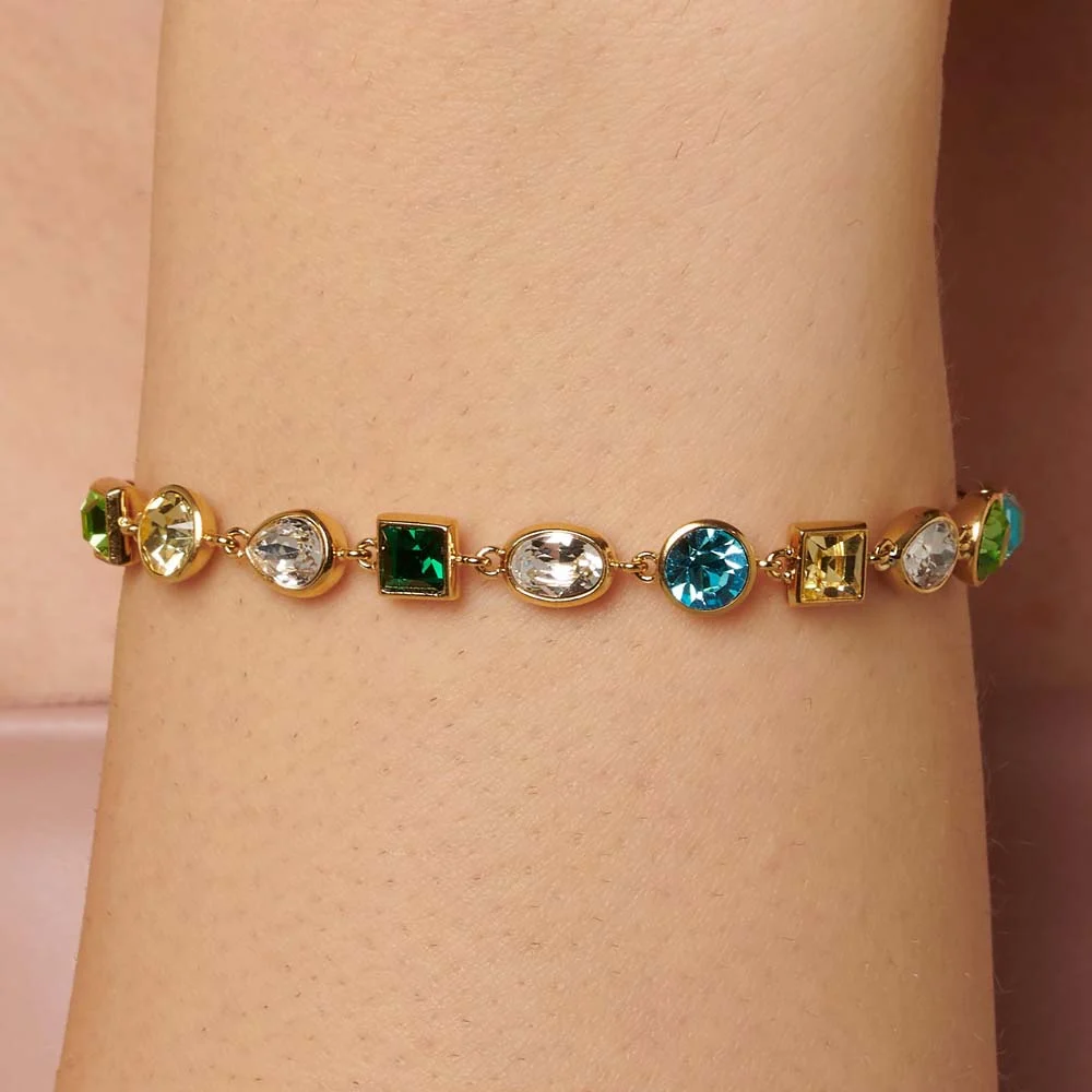 Luxusní náramek značky Brosway je elegantní doplněk určený pro ženy, který se skvěle hodí k různým příležitostem. vyrobený z kvalitní chirurgické oceli 316L, zaručuje dlouhou životnost a odolnost. potažený zlatým PVD povlakem. bohatě zdobený oslnivými barevnými krystaly v několika různých výbrusech, krásně kontrastuje s jemným designem. tento náramek je ideální volbou pro každodenní nošení i speciální okamžiky.
