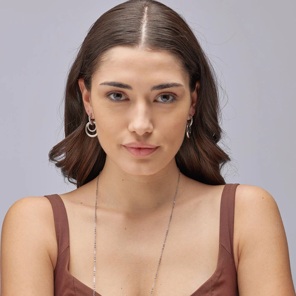 Moderní visací náušnice značky Brosway jsou elegantním doplňkem pro moderní ženy. Jsou vyrobeny z kvalitní chirurgické oceli 316L, která zajišťuje odolnost a dlouhou životnost. Základ naušnic tvoří půlkruhy se zapínáním na ocelovou puzetou pro pohodlné nošení. Tyto náušnice přinesou šarm a sofistikovanost každému outfitu.