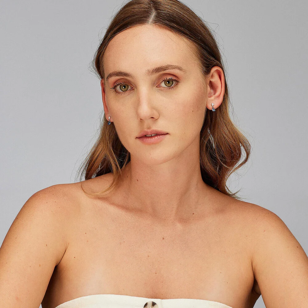 Elegantní náušnice značky Brosway jsou dokonalým doplňkem pro každou ženu, která ocení jemnost a třpyt. Jsou vyrobeny z kvalitního stříbra 925/1000 s rhodiovaným povrchem. Náušnice jsou osazeny čirými a modrými kubickými zirkony. Jejich zapínání je řešeno stříbrnou puzetou, která zajišťuje bezpečné nošení. Tento šperk je ideální pro každodenní nošení nebo speciální příležitosti.