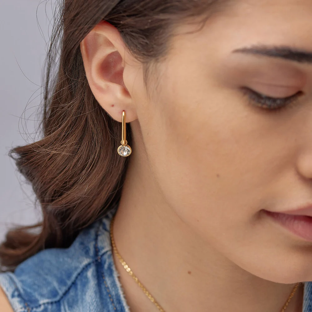 Půvabné oválné náušnice značky Brosway jsou elegantním doplňkem pro každou ženu. Jsou vyrobeny z kvalitní chirurgické oceli 316L, která zajišťuje dlouhou životnost a odolnost. Náušnice jsou potaženy zlatým PVD povlakem, který jim dává punc luxusu a elegance. Na oválných kruzích je navěšen přívěsek s kulatým čirým krystalem, které jemně zachycují světlo. Přívěsek je odjímatelný, takže máte variabilitu při kombinování s jinými šperky nebo outfitem. Zapínání na ocelový patent zajišťuje bezpečné nošení. Náušnice jsou ideální volbou pro každodenní i speciální příležitosti.
