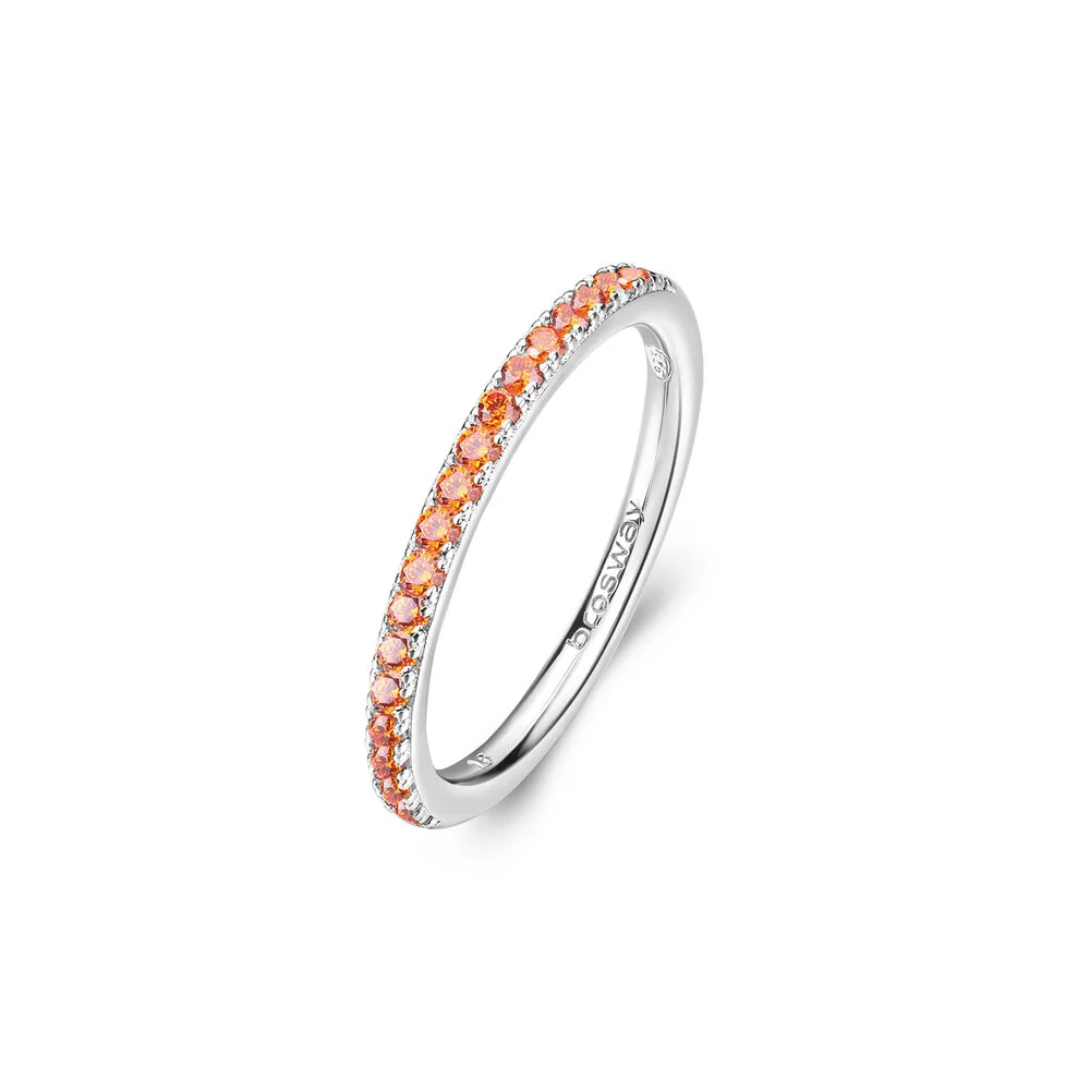 Krásný prsten značky Brosway je elegantní šperk, který okouzlí každou ženu. Je vyroben z kvalitního stříbra 925/1000 s rhodiovaným povrchem. Prsten je ozdoben oranžovými kubickými zirkony, díky kterým vytváří jemný a moderní vzhled. Tento prsten je ideální volbou pro každodenní nošení i speciální příležitosti.